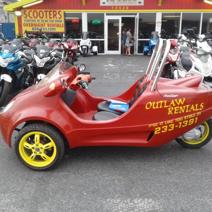 A Scoot Coupe is a three-wheeled vehicle that is a cross between a scooter and a very small car. Scoot Coupes seat two passengers and are built by Panther Motors Inc. About Scoot Coupe Scoot Coupes come in two models, the P50 and the P150. The P150 can go about 55